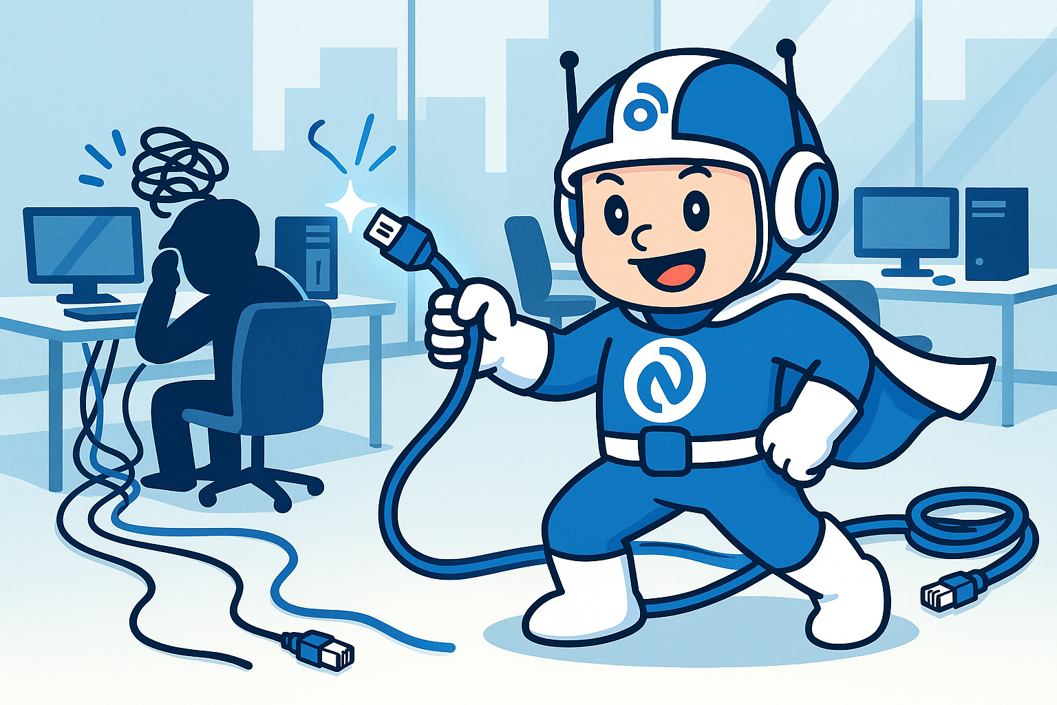 - お悩み1:「社内で安定したネット環境を整えたいけど、配線や設定が難しい…」